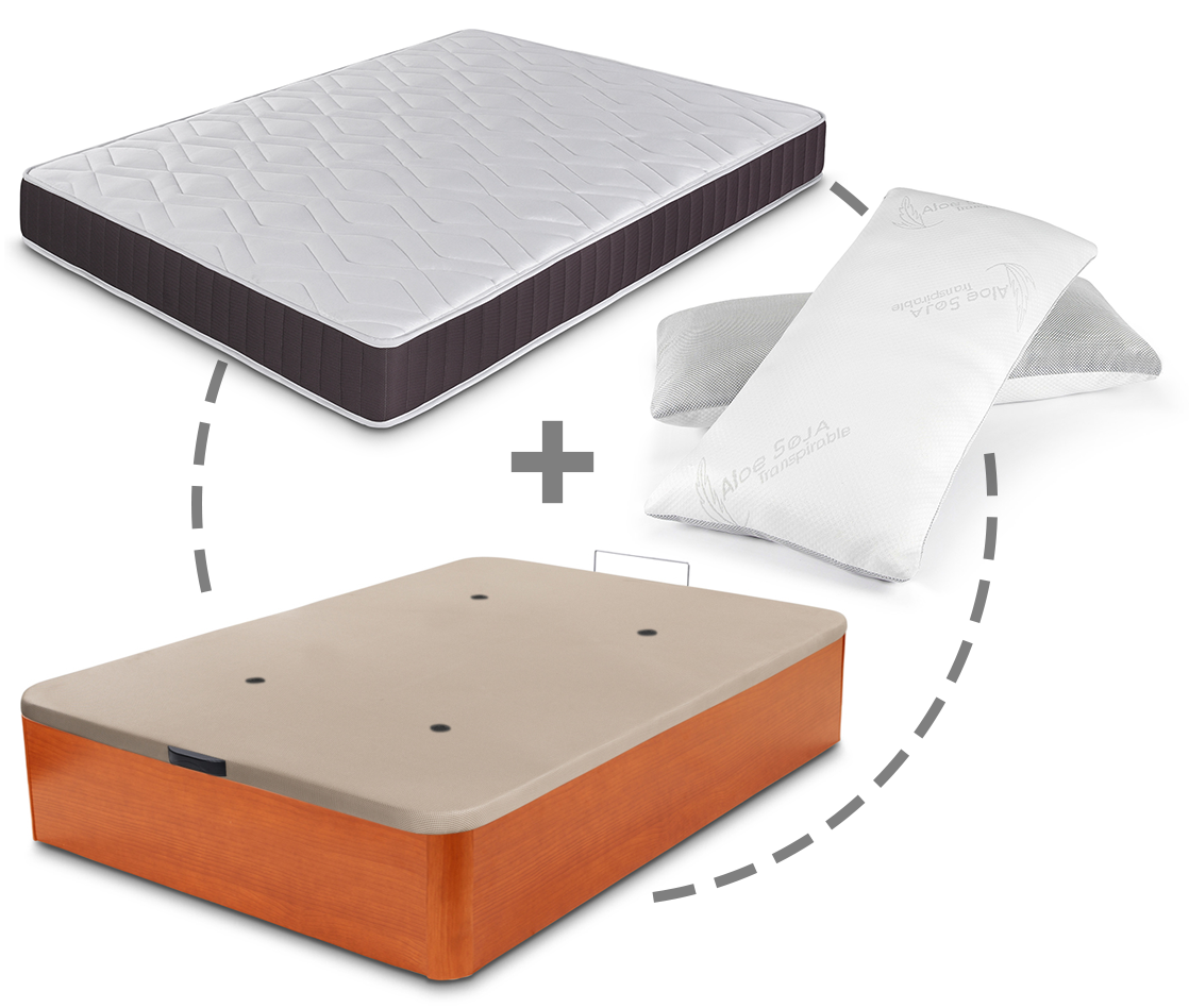 Pack económico 150x190 en cerezo, sistema integral de descanso.